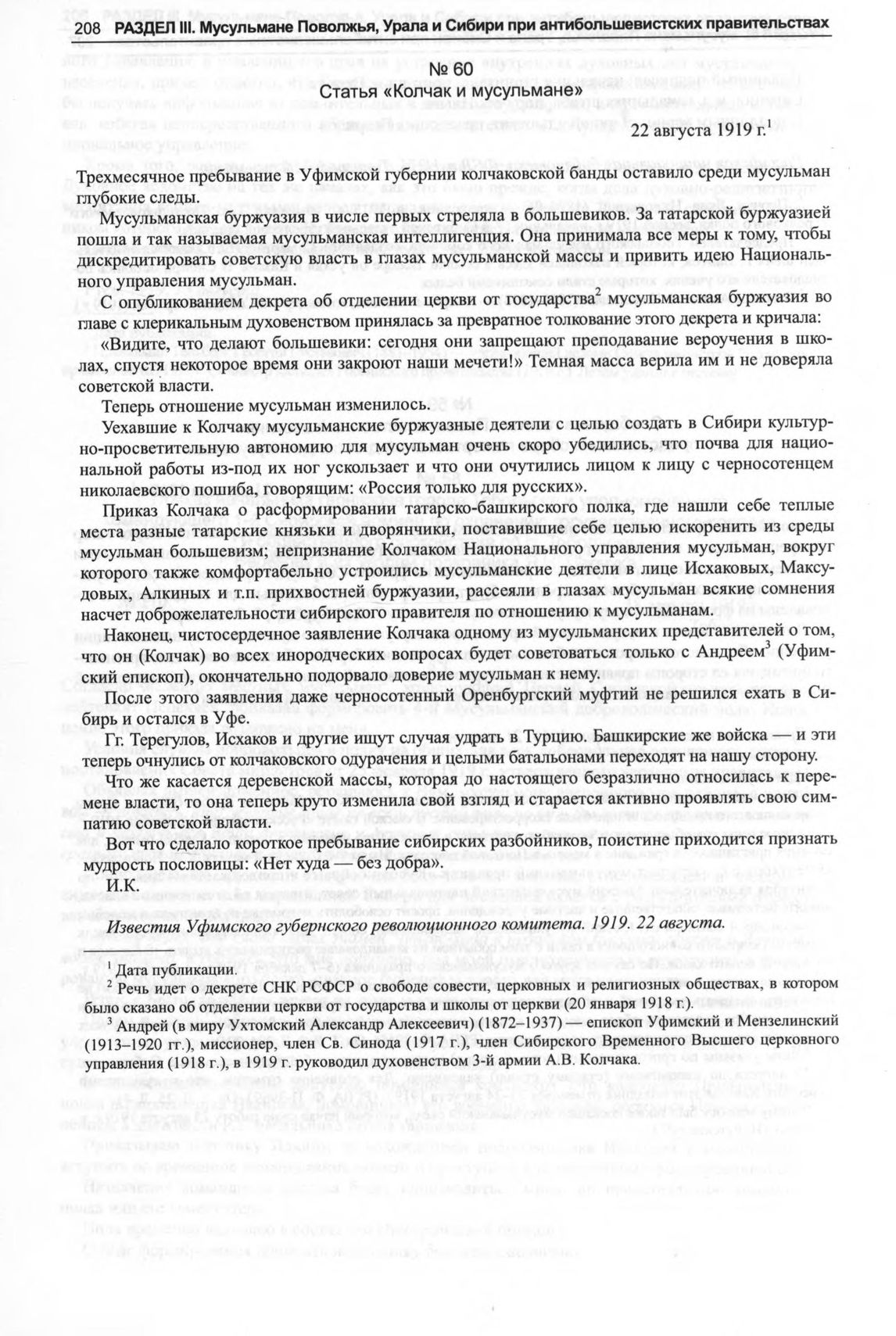 Статья «Колчак и мусульмане». 22 августа 1919 г. // Известия Уфимского губернского революционного комитета. 1919. 22 августа.