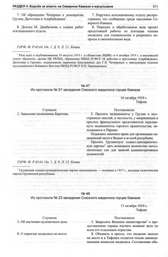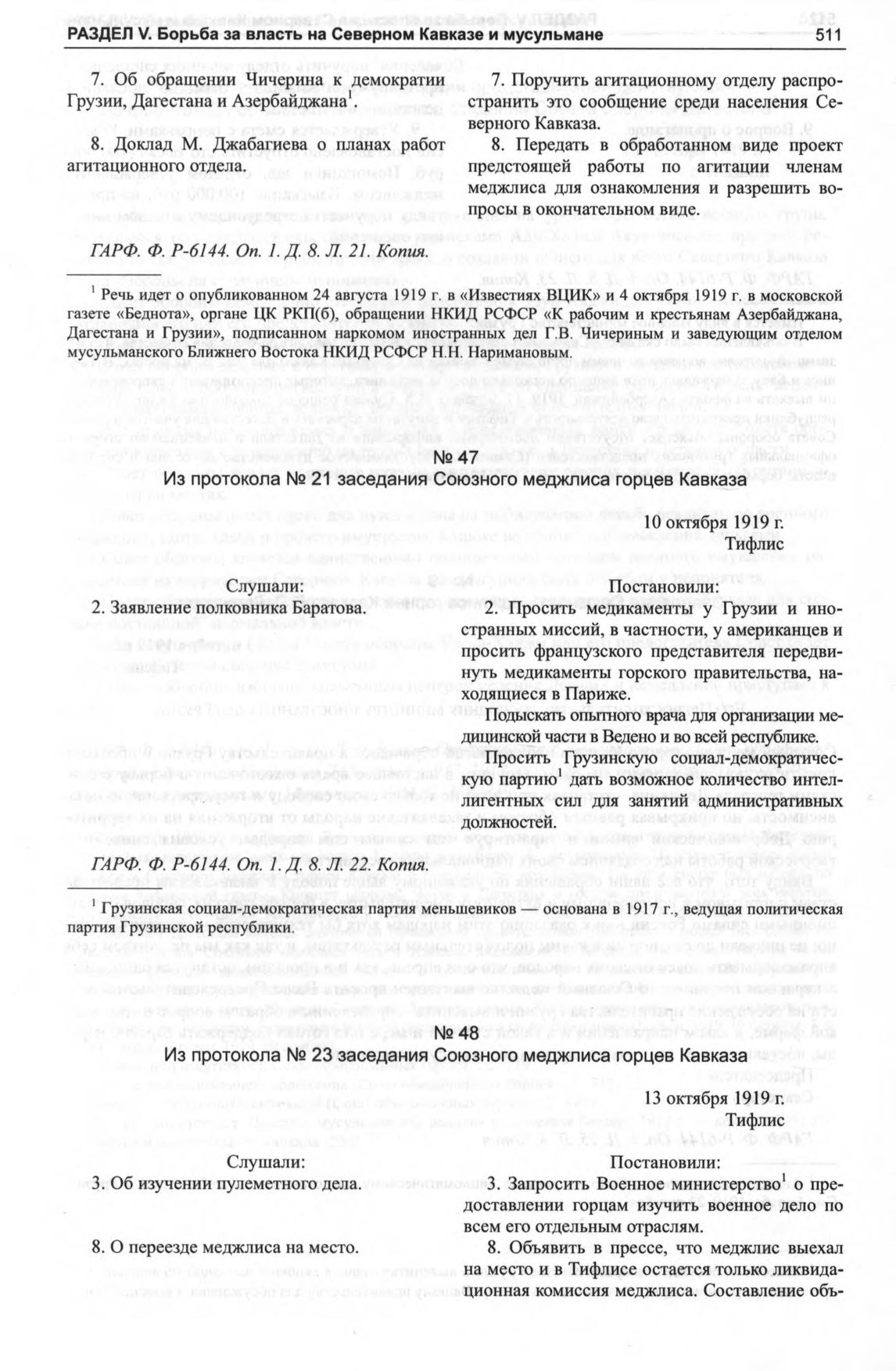 Из протокола № 23 заседания Союзного меджлиса горцев Кавказа. 13 октября 1919 г. // ГА РФ. Ф. P-6144. Oп. 1. Д. 8. Л. 23. Копия.