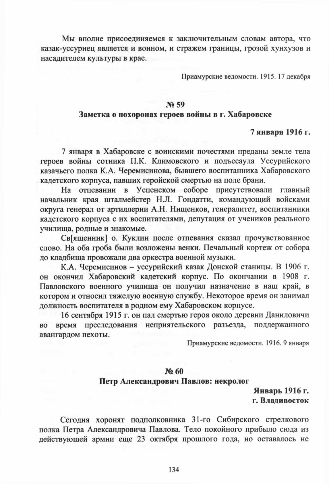 Заметка о похоронах героев войны в г. Хабаровске. 7 января 1916 г. // Приамурские ведомости. 1916. 9 января.