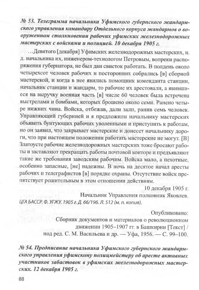 Предписание начальника Уфимского губернского жандармского управления уфимскому полицмейстеру об аресте активных участников забастовок в уфимских железнодорожных мастерских. 12 декабря 1905 г. // Сборник документов и материалов о революционном движении 1905-1907 гг. в Башкирии [Текст] / под ред. С. М. Васильева и др.—Уфа, 1956. С. 101.