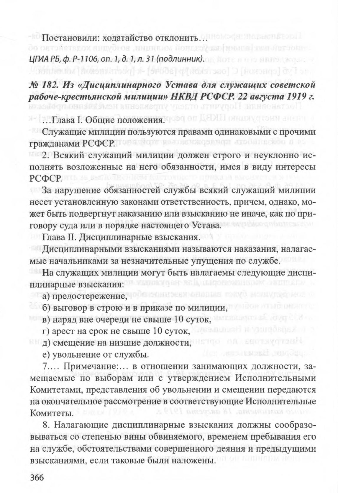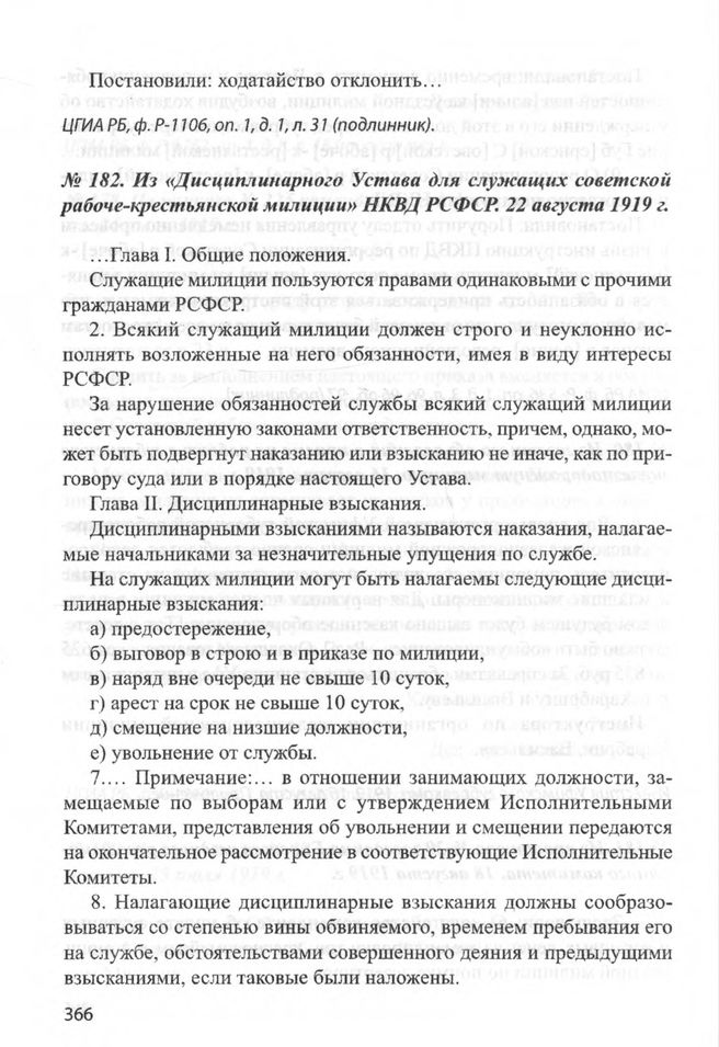 Из «Дисциплинарного Устава для служащих советской рабоче-крестьянской милиции» НКВД РСФСР. 22 августа 1919 г.