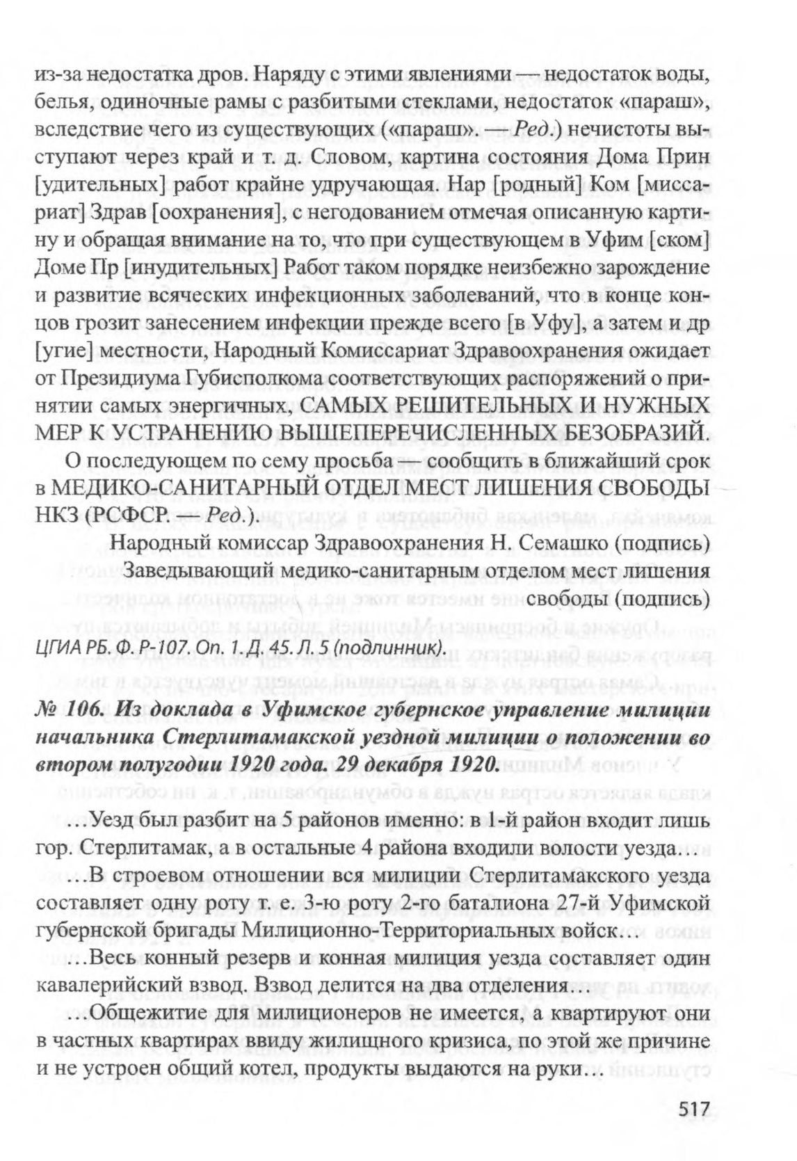 Из доклада в Уфимское губернское управление милиции начальника Стерлитамакской уездной милиции о положении во втором полугодии 1920 года. 29 декабря 1920. // ЦГИА РБ. Ф. Р-1262. Oп. 1. Д. 210. Л. 11-16 (подлинник).