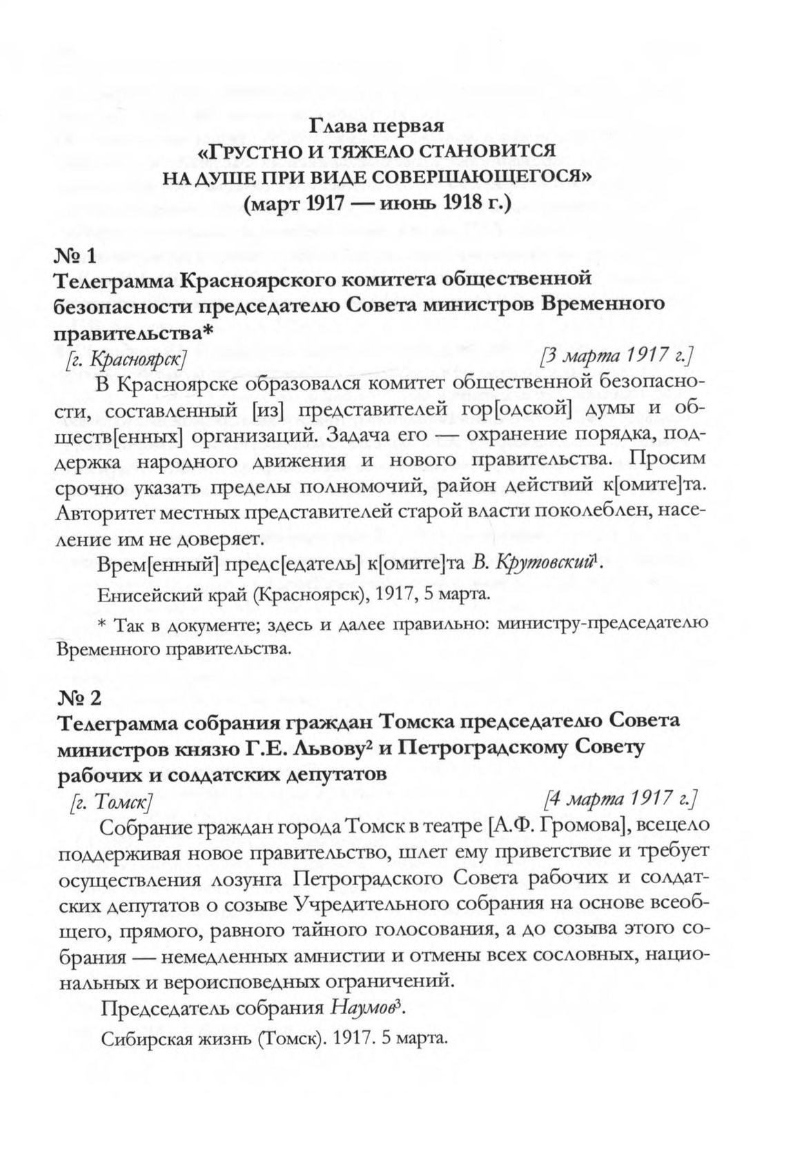 Телеграмма Красноярского комитета общественной безопасности председателю Совета министров Временного правительства. [г. Красноярск]. [3 марта 1917 г.] // Енисейский край (Красноярск), 1917, 5 марта.