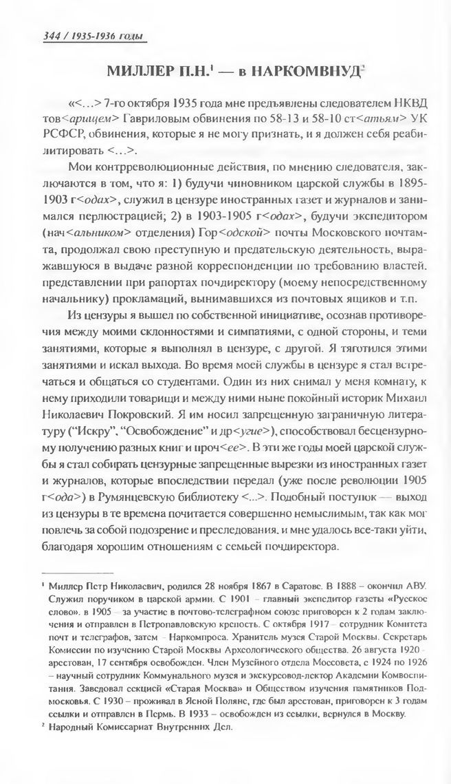 Миллер П.Н. — в Наркомвнуд // ГА РФ. Ф. 8409. Оп. 1. Д. 1506. С. 159-163. Машинопись, подпись- автограф.