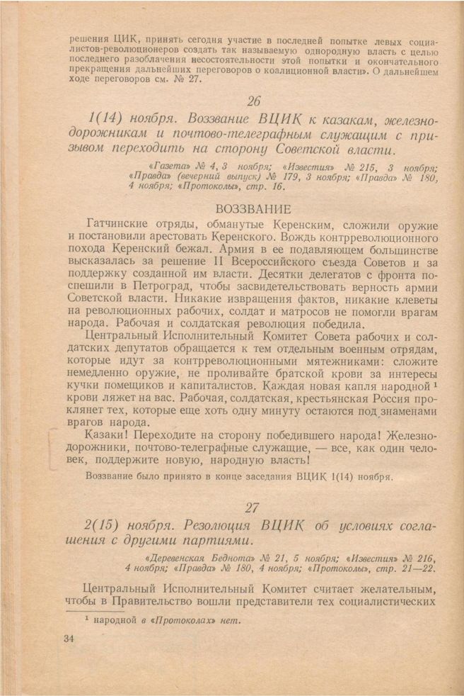 Главная Серия «Экономическая история. Документы, исследования, переводы» Декреты советской власти в 18 т. Декреты Советской власти. Т. I. 25 октября 1917 г. – 16 марта 1918 г. Документы 1 (14) ноября. Воззвание ВЦИК к казакам, железнодорожникам и почто...