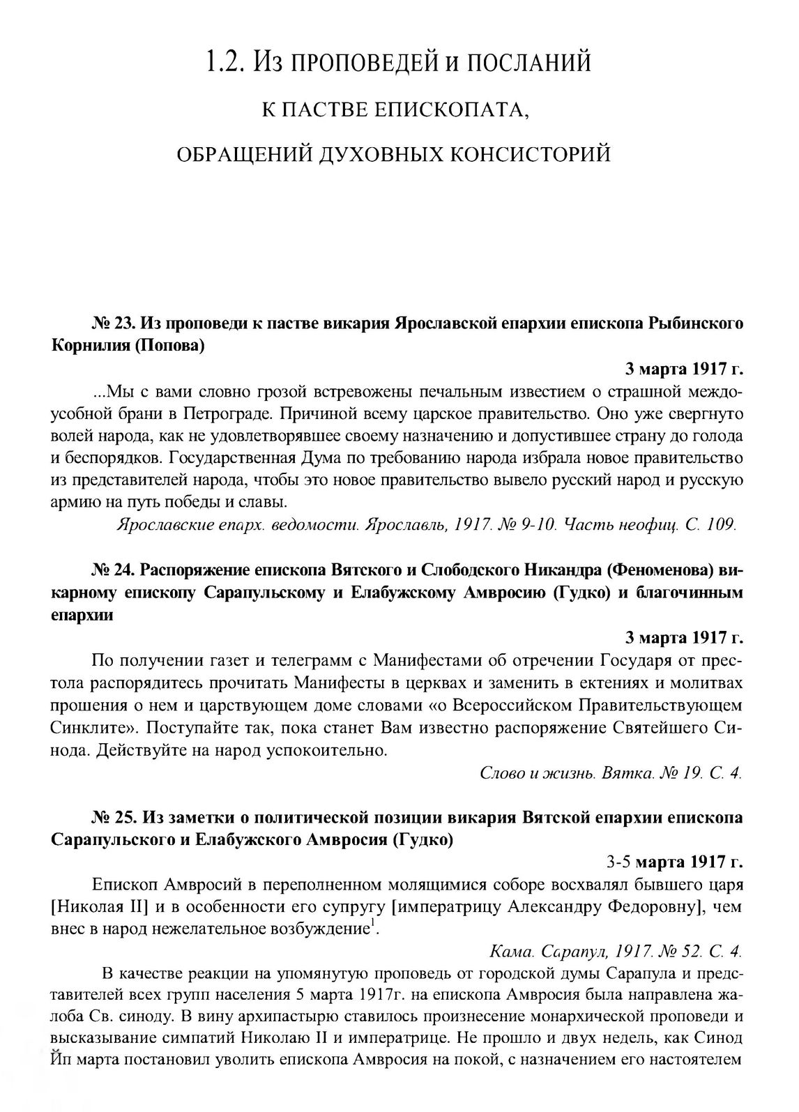 Из заметки о политической позиции викария Вятской епархии епископа Сарапульского и Елабужского Амвросия (Гудко). 3-5 марта 1917 г. // Кама. Сарапул, 1917. № 52. С. 4