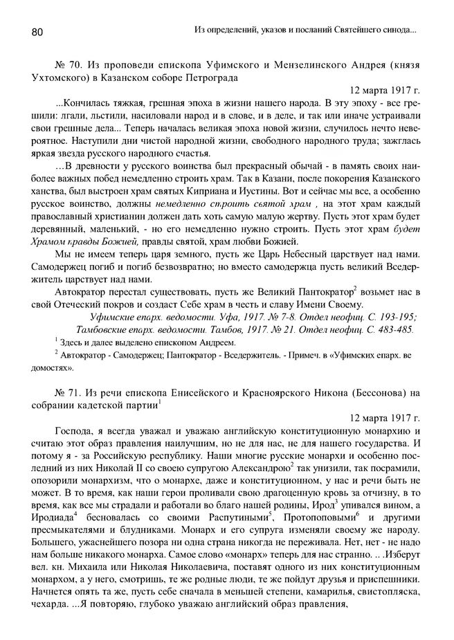 Из проповеди епископа Уфимского и Мензелинского Андрея (князя Ухтомского) в Казанском соборе Петрограда. 12 марта 1917 г. // Уфимские епарх. ведомости. Уфа, 1917. № 7-8. Отдел неофиц. С. 193-195; Тамбовские епарх. ведомости. Тамбов, 1917. № 21. Отдел неофиц. С. 483-485.