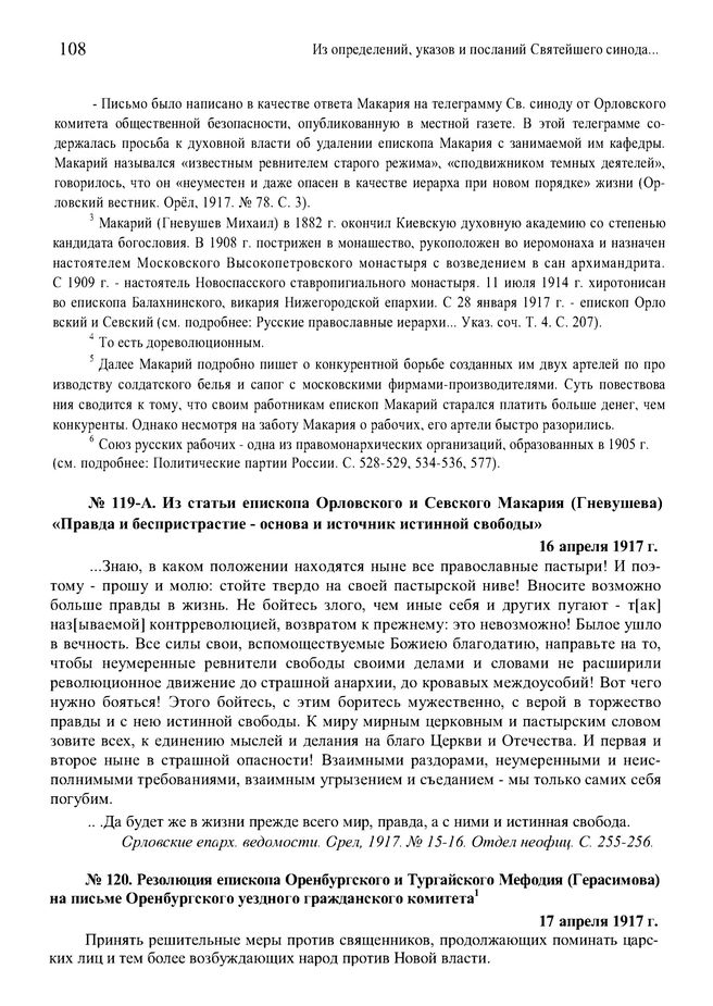 Из статьи епископа Орловского и Севского Макария (Гневушева) «Правда и беспристрастие - основа и источник истинной свободы». 16 апреля 1917 г. // Орловские епарх. ведомости. Орел, 1917. № 15-16. Отдел неофиц. С. 255-256.