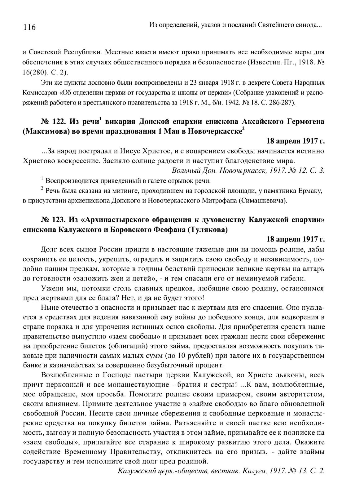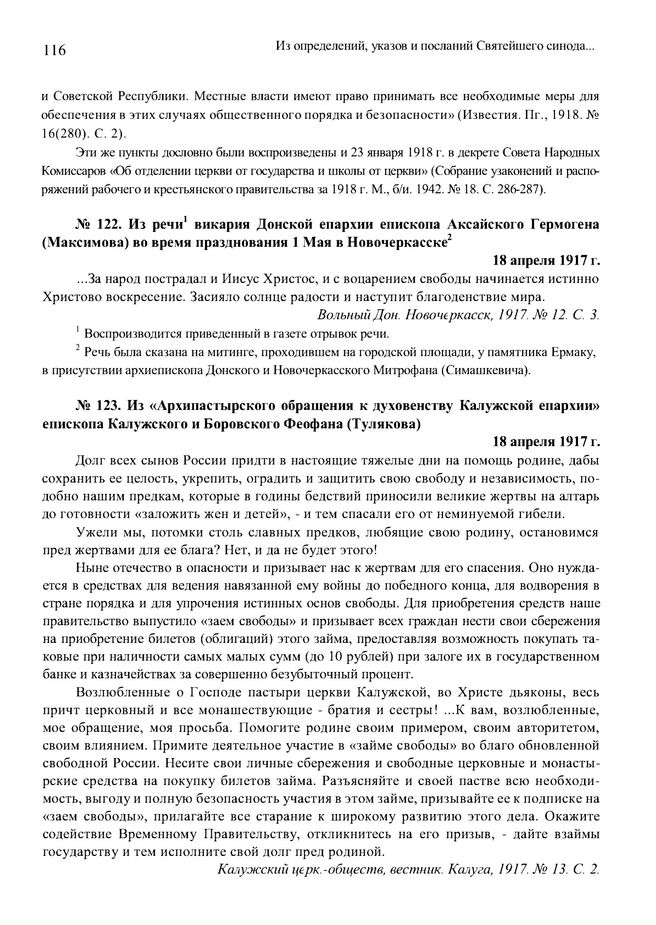 Из «Архипастырского обращения к духовенству Калужской епархии» епископа Калужского и Боровского Феофана (Туликова).18 апреля 1917 г. // Калужский церк.-обществ, вестник. Калуга, 1917. № 13. С. 2.
