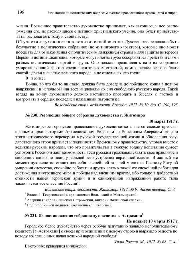 Резолюция общего собрания духовенства г. Житомира. 10 марта 1917 г. // Волынские епарх. ведомости. Житомир, 1917. № 9. Частъ неофиц. С. 9.