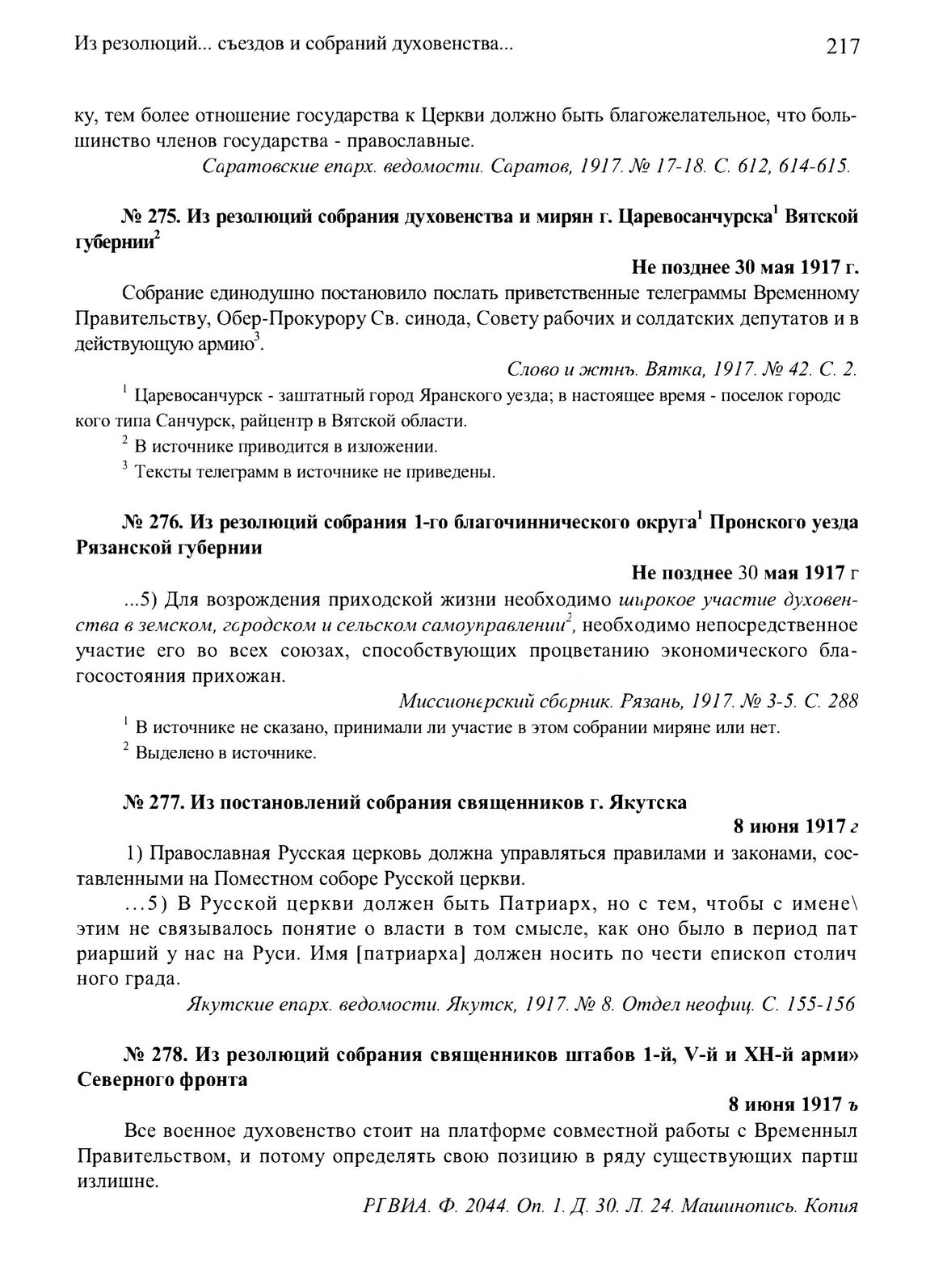 Главная Российское духовенство и свержение монархии в 1917 году: Материалы ... Документы Из резолюций собрания священников штабов I-й, V-й и ХII-й армий Сев...
