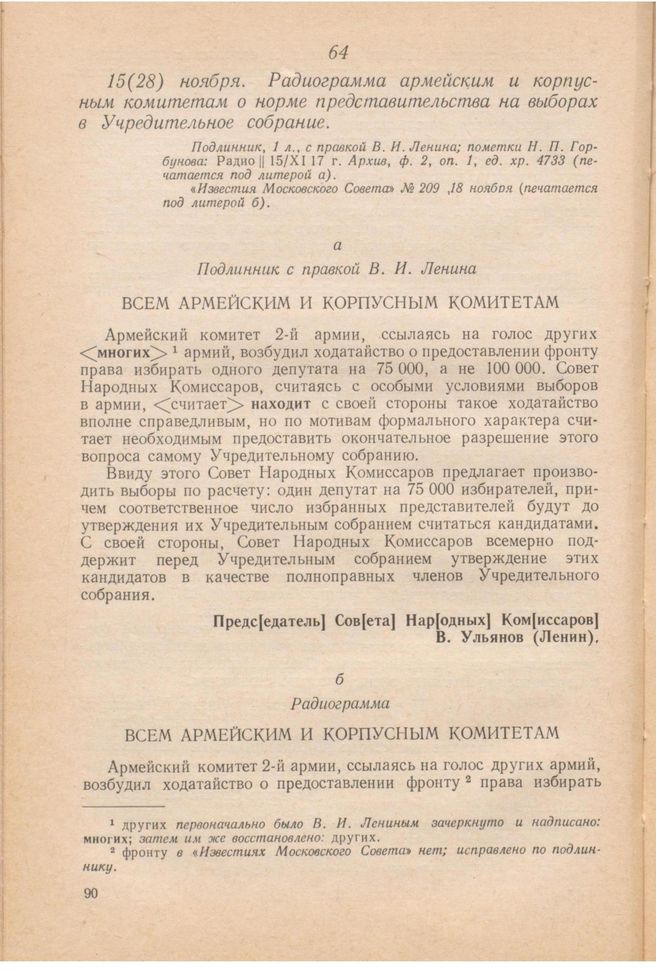 Главная Серия «Экономическая история. Документы, исследования, переводы» Декреты советской власти в 18 т. Декреты Советской власти. Т. I. 25 октября 1917 г. – 16 марта 1918 г. Документы 15 (28) ноября. Радиограмма армейским и корпусным комитетам о норм...