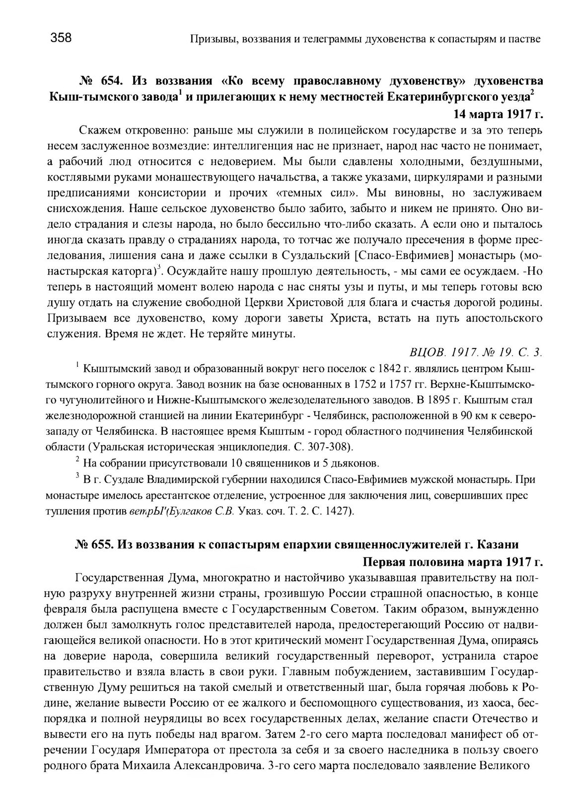 Из воззвания «Ко всему православному духовенству» духовенства Кыштымского завода и прилегающих к нему местностей Екатеринбургского уезда. 14 марта 1917 г. // ВЦОВ. 1917. № 19. С. 3.