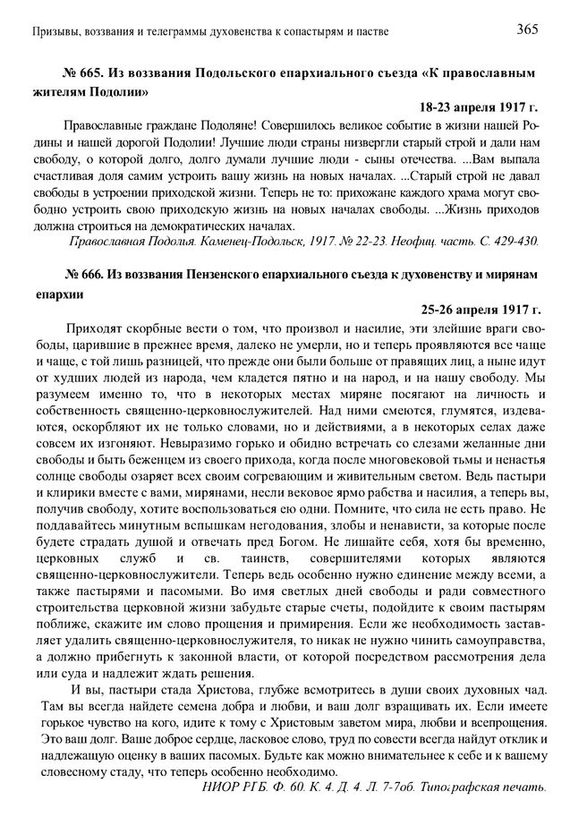 Из воззвания Подольского епархиального съезда «К православным жителям Подолии». 18-23 апреля 1917 г. // Православная Подолия. Каменец-Подольск, 1917. № 22-23. Неофиц. часть. С. 429-430.