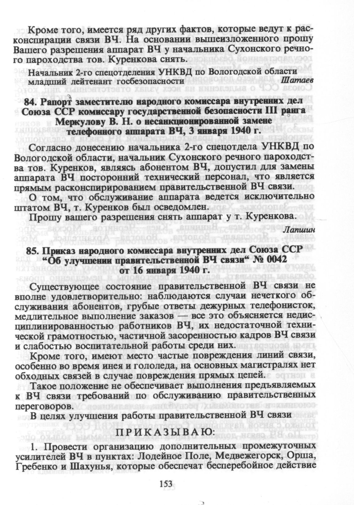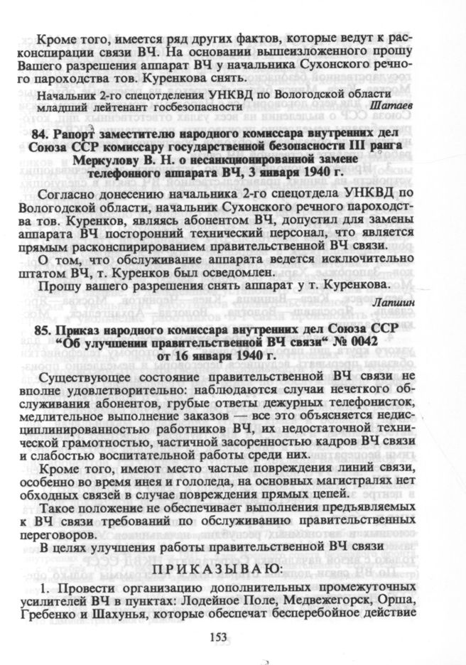 Приказ народного комиссара внутренних дел Союза ССР ”Об улучшении правительственной ВЧ связи” No 0042 от 16 января 1940 г. // ЦОА ФСБ РФ.