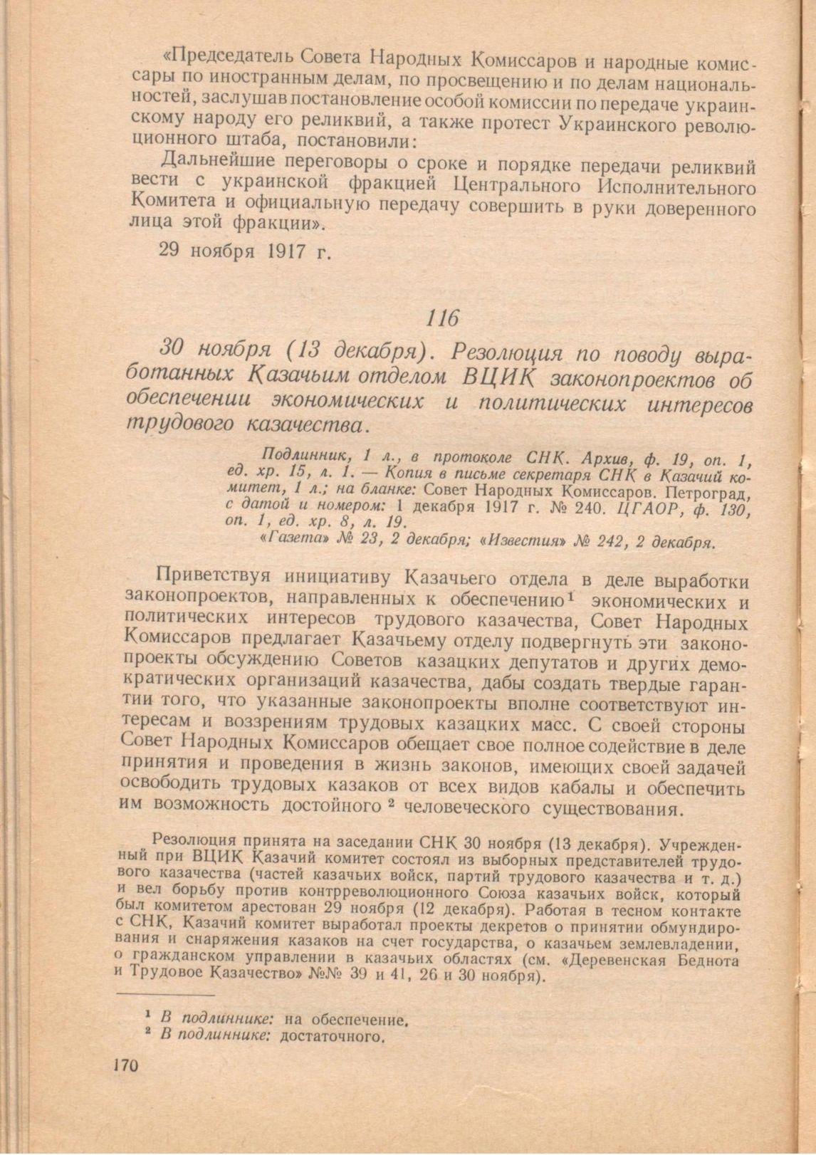 Главная Серия «Экономическая история. Документы, исследования, переводы» Декреты советской власти в 18 т. Декреты Советской власти. Т. I. 25 октября 1917 г. – 16 марта 1918 г. Документы 30 ноября (13 декабря). Резолюция по поводу выработанных Казачьим ...