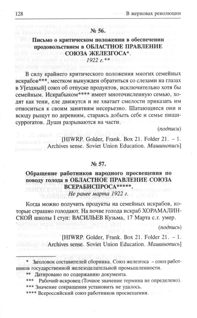 Письмо о критическом положении в обеспечении продовольствием в Областное правление Союза Железгоса. 1922 г. // HIWRP. Golder, Frank. Box 21. Folder 21. - 1. Archives sense. Soviet Union Education. Машинопись.