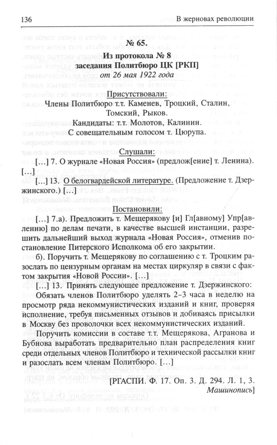 Из протокола № 8 заседания Политбюро ЦК [РКП] от 26 мая 1922 г. // РГАСПИ. Ф. 17. Оп. 3. Д. 294. Л. 1, 3. Машинопись.
