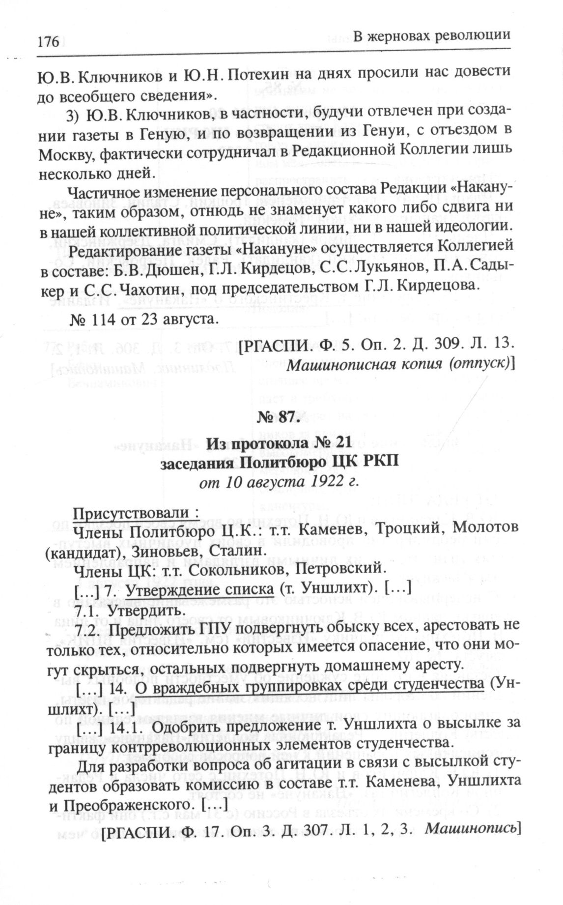 Из протокола № 21 заседания Политбюро ЦК РКП от 10 августа 1922 г. // РГАСПИ. Ф. 17. Оп. 3. Д. 307. Л. 1, 2, 3. Машинопись.