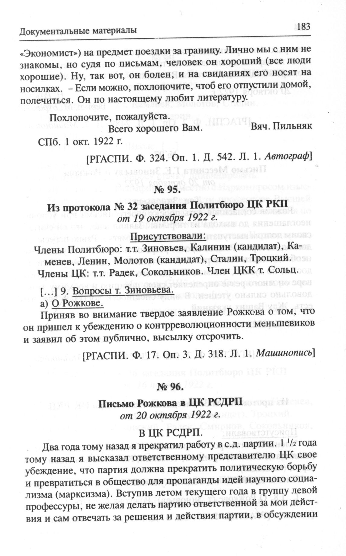 Из протокола № 32 заседания Политбюро ЦК РКП от 19 октября 1922 г. // РГАСПИ. Ф. 17. Оп. 3. Д. 318. Л. 1. Машинопись.