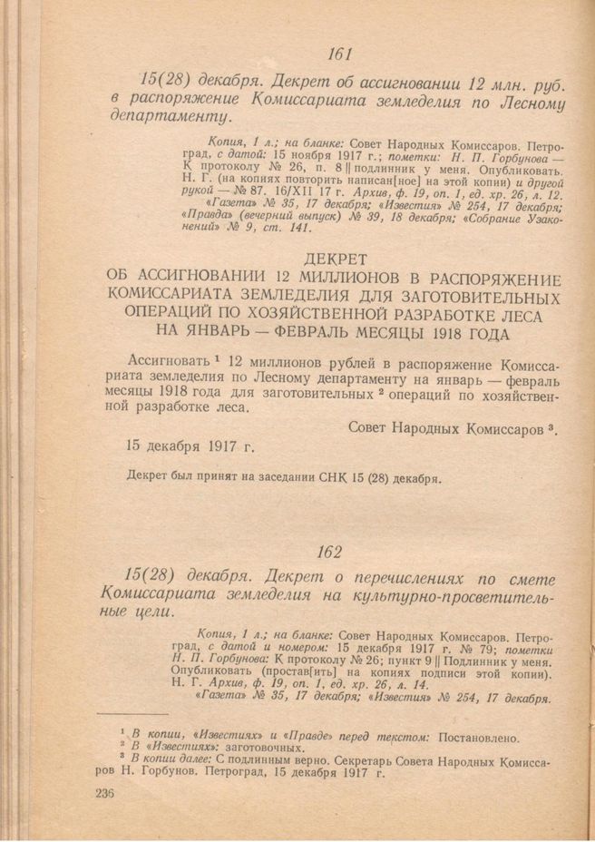 Главная Серия «Экономическая история. Документы, исследования, переводы» Декреты советской власти в 18 т. Декреты Советской власти. Т. I. 25 октября 1917 г. – 16 марта 1918 г. Документы 15 (28) декабря. Декрет о перечислениях по смете Комиссариата земле...