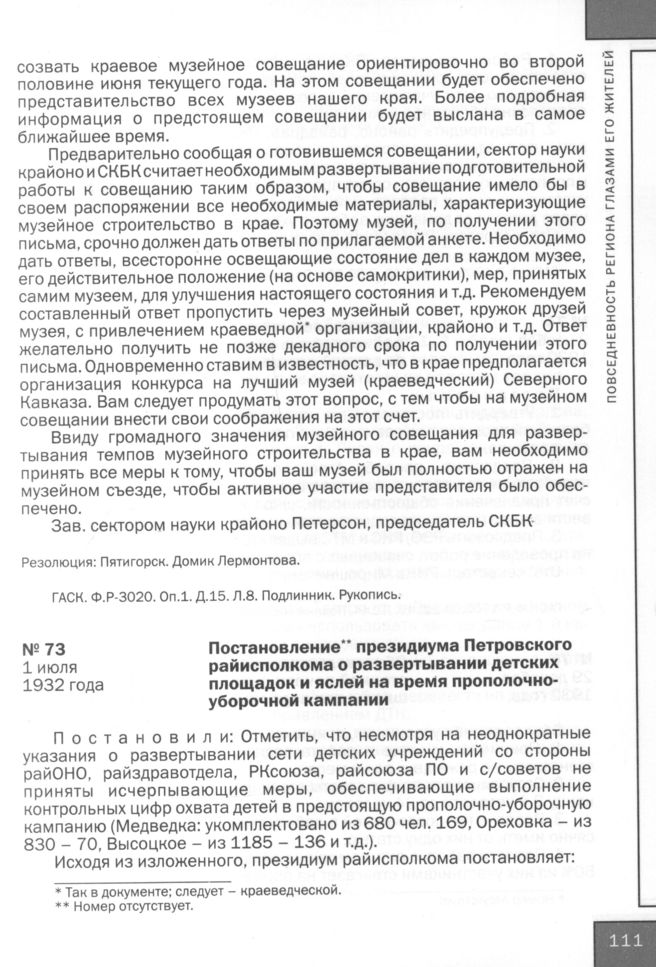 Голоса из провинции: Жители Ставрополья в 1930-1940 годах: Сб. док. — Ставрополь, 2010.