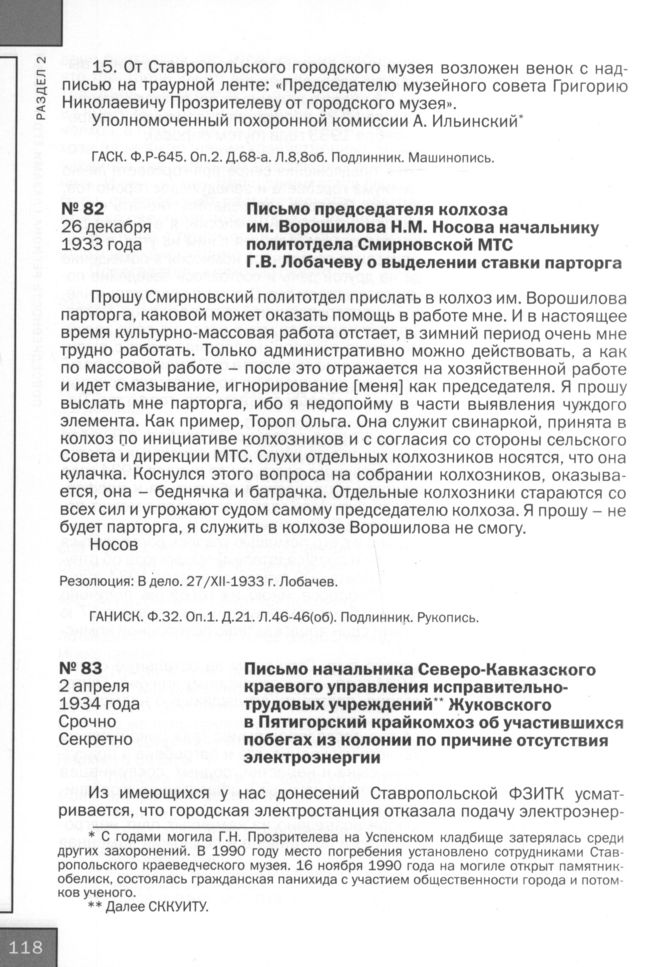 Голоса из провинции: Жители Ставрополья в 1930-1940 годах: Сб. док. — Ставрополь, 2010.