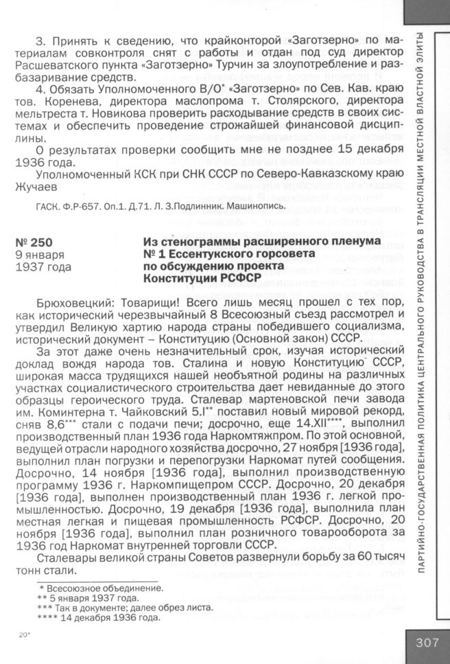 Из стенограммы расширенного пленума № 1 Ессентукского горсовета по обсуждению проекта Конституции РСФСР. 9 января 1937 года // ГАСК. Ф. Р-2032. Оп. 1. Д. 108. Л. 1-13,16-18, 25-26. Подлинник. Машинопись.