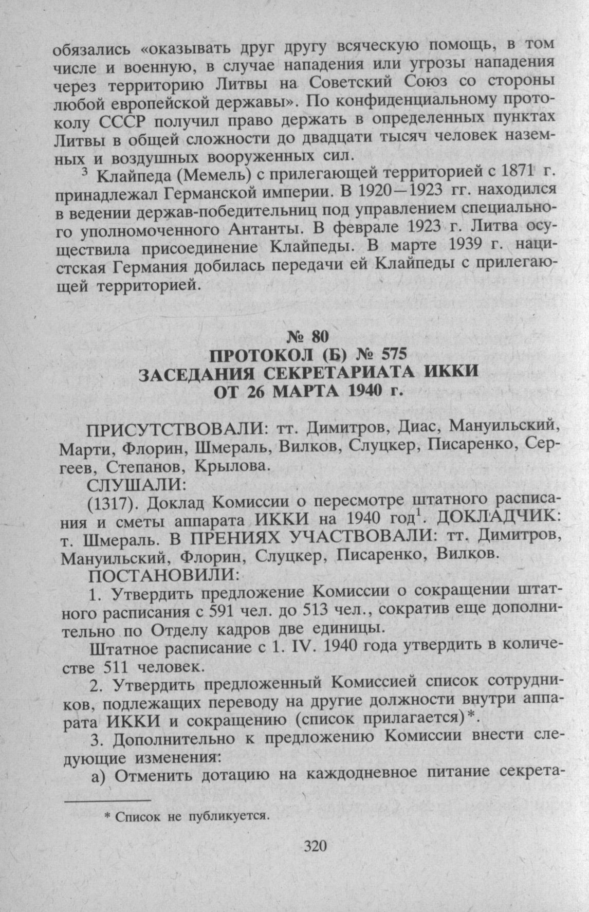Протокол (Б) № 575 заседания Секретариата ИККИ от 26 марта 1940 г. // РЦХИДНИ. Ф. 495, Оп. 18, Д. 1319, Л. 64-65. Подлинник, машинопись, русский язык.