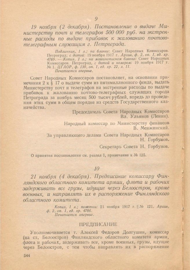 Главная Серия «Экономическая история. Документы, исследования, переводы» Декреты советской власти в 18 т. Декреты Советской власти. Т. I. 25 октября 1917 г. – 16 марта 1918 г. Документы 21 ноября (4 декабря). Предписание комиссару Финляндского областно...