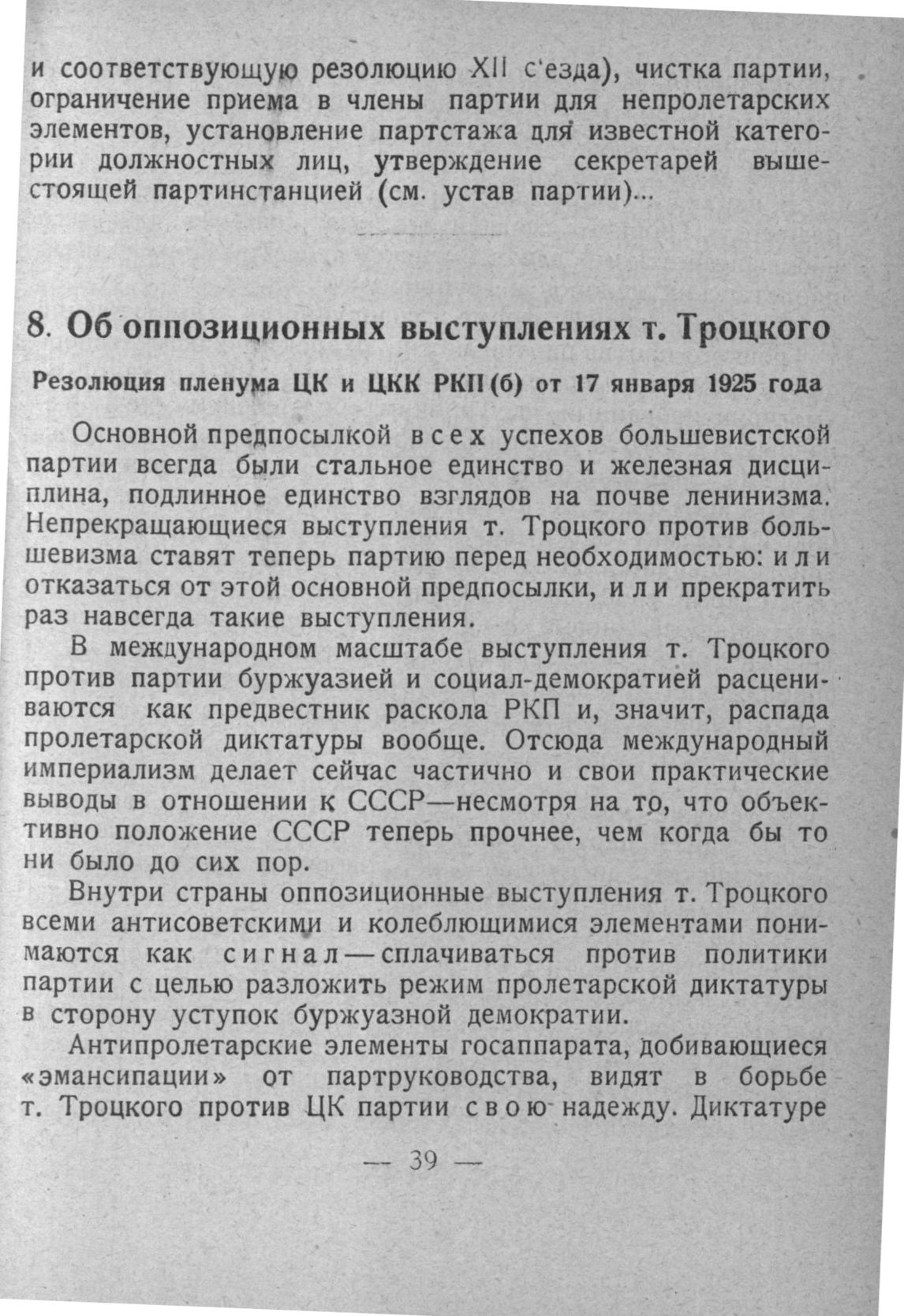 Об оппозиционных выступлениях т. Троцкого. Резолюция пленума ЦК и ЦКК РКП(б) от 17 января 1925 года
