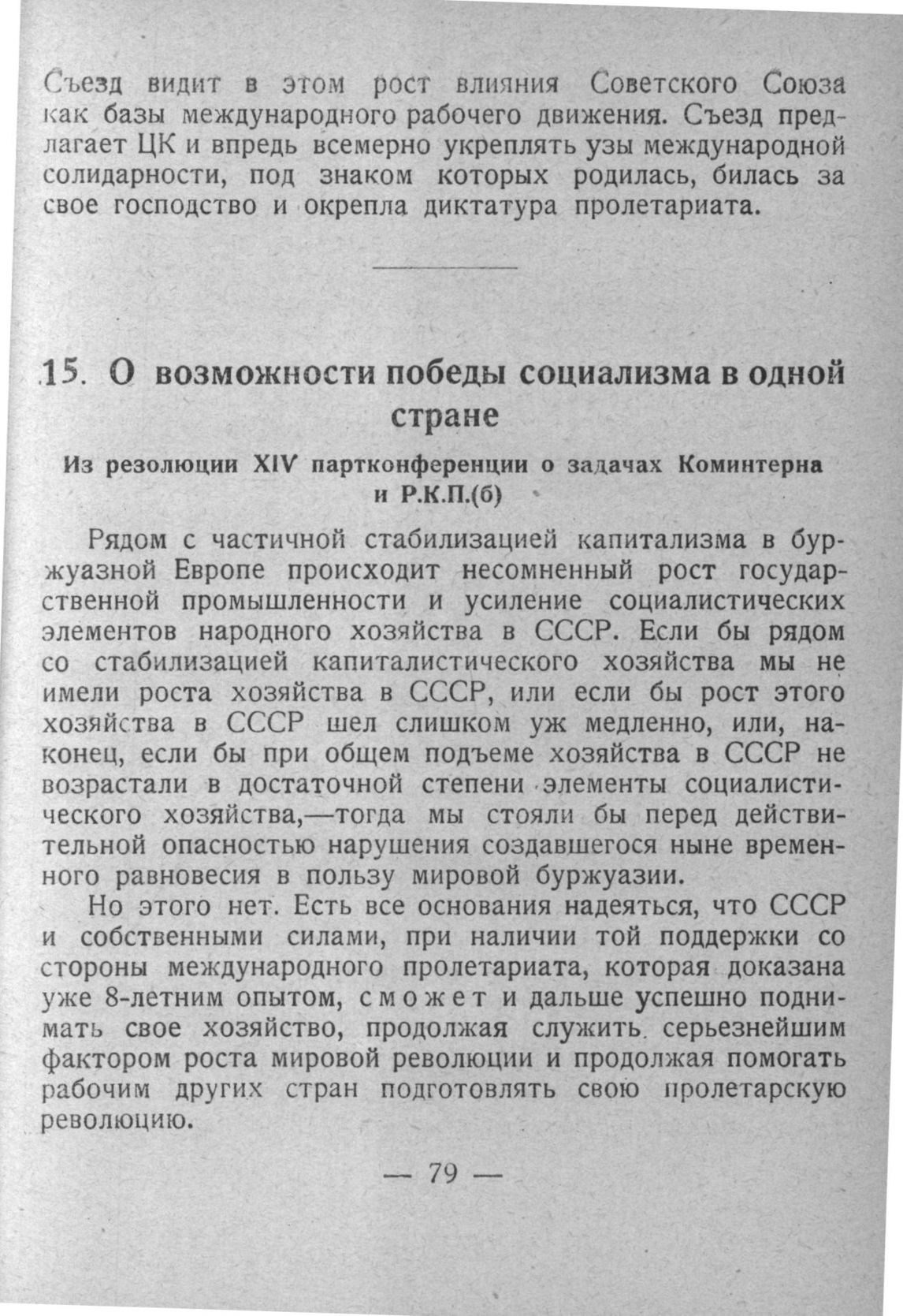 О возможности победы социализма в одной стране. Из резолюции XIV партконференции о задачах Коминтерна и Р.К.П.(б)