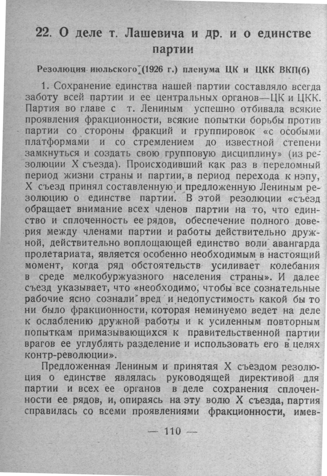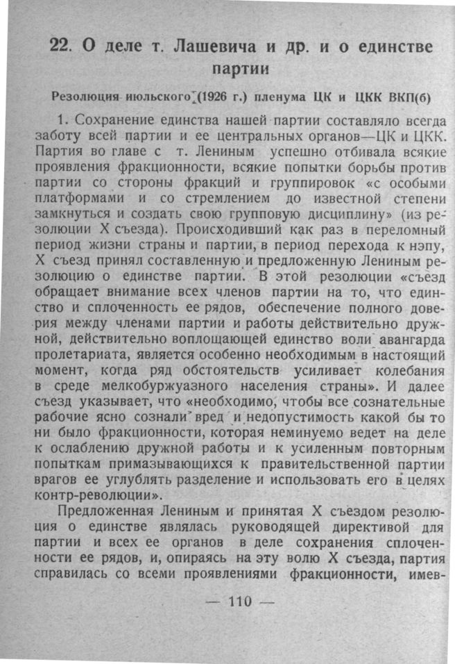 О деле т. Лашевича и др. и о единстве партии. Резолюция июльского (1926 г.) пленума ЦК и ЦКК ВКП(б)