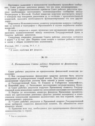 28 февраля. II. Общее собрание. 3. Постановление Совета рабочих депутатов по финансовому вопросу // Известия. 1917. 1 марта. № 2. С. 2.