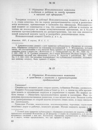2 марта. I. Заседание Исполнительного комитета. 2. Обращение Исполнительного комитета к солдатам и рабочим по поводу призывов к насилию над офицерами // Известия. 1917. 3 марта. № 4. С. 5.