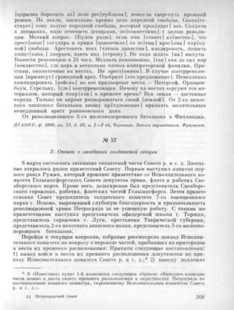 Петроградский Совет рабочих и солдатских депутатов в 1917 году: Протоколы, стенограммы и отчеты, резолюции, постановления общих собраний, собраний секций, заседаний Исполнительного комитета и фракций (27 февраля — 25 октября 1917 года). Т. 1 (27 февраля — 31 марта 1917 года). — Л.: Наука. Ленингр. отд-ние, 1991.