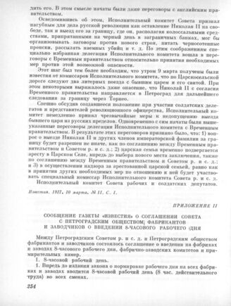10 марта. III. Общее собрание. Приложение. Сообщение газеты «Известия» о соглашении Совета с Петроградским обществом фабрикантов и заводчиков о введении 8-часового рабочего дня