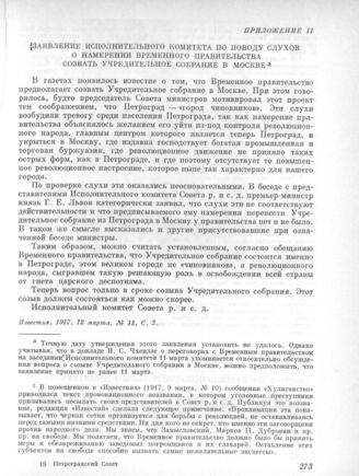 11 марта. I. Заседание Исполнительного комитета. Приложение. Заявление Исполнительного комитета по поводу слухов о намерении Временного правительства созвать Учредительное собрание в Москве // Известия. 1917. 12 марта. № 13. С. 2.