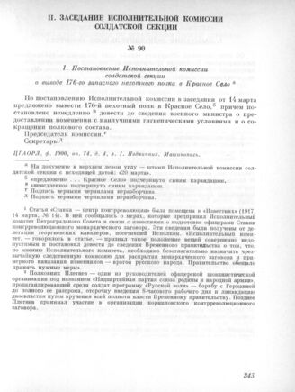 16 марта. I. Заседание Исполнительного комитета. Приложение. Ходатайство Исполнительного комитета о возвращении Гвардейского запасного артиллерийского дивизиона в Новый Петергоф // ЦГАОРЛ, Ф. 1000, Оп. 74, Д. 4, Л. 1. Подлинник. Машинопись.