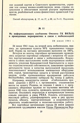 Главная Партийные организации в годы Великой Отечественной войны Омская партийная организация в период Великой Отечественной войны. ... Омская партийная организация в период Великой Отечественной войны. ... Документы Из информационного сообщения Омского ГК ВКП(б) о проведенных меропр...