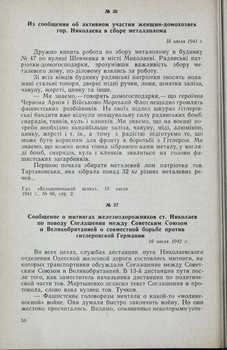 Сообщение о митингах железнодорожников ст. Николаев по поводу Соглашения между Советским Союзом и Великобританией о совместной борьбе против гитлеровской Германии. 16 июля 1942 г. // Газ. «Южная правда», 16 июля 1941 г., № 167, стр. 2.