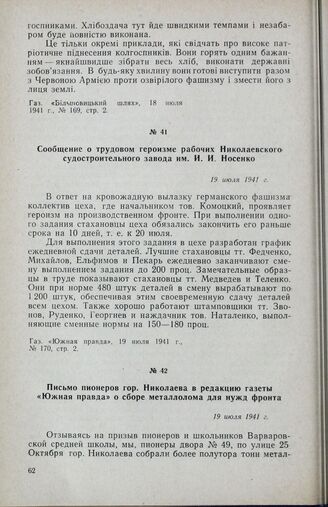 Письмо пионеров гор. Николаева в редакцию газеты «Южная правда» о сборе металлолома для нужд фронта. 19 июля 1941 г. // Газ. «Южная правда», 19 июля 1941 г., № 170, стр. 2.