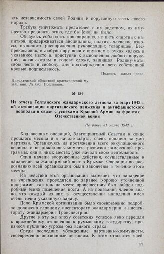 Из отчета Голтянского жандармского легиона за март 1943 г. об активизации партизанского движения и антифашистского подполья в связи с успехами Красной Армии на фронтах Отечественной войны. Не ранее 31 марта 1943 г.