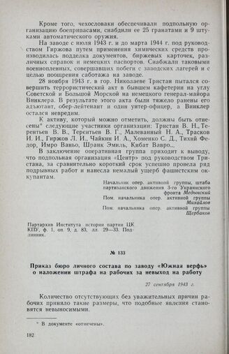 Приказ бюро личного состава по заводу «Южная верфь» о наложении штр...