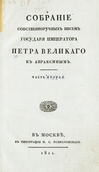 Собрание собственноручных писем государя императора Петра Великого к Апраксиным. Ч. 2