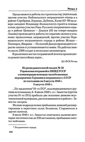 Из разведывательной сводки № 58 Управления погранвойск НКВД УССР о концентрации немецких частей и военных мероприятиях Германии в погранполосе с СССР по состоянию на 3 августа 1940 г. 5 августа 1940 г. // ЦА ФСБ России.