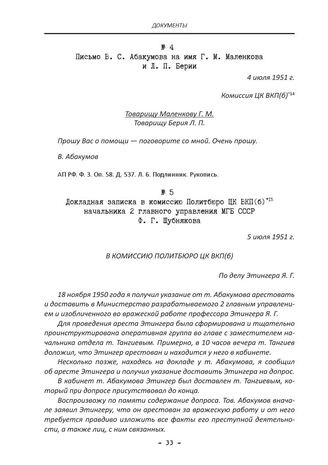Письмо В. С. Абакумова на имя Г. М. Маленкова и Л. П. Берии. 4 июля 1951 г.