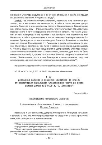 Докладная записка в комиссию Политбюро ЦК ВКП(б) от заместителя начальника Следственной части по особо важным делам МГБ СССР М. Т. Лихачева. 7 июля 1951 г. // АП РФ. Ф. 3. Оп. 58. Д. 537. Л. 74–80. Подлинник. Машинопись.