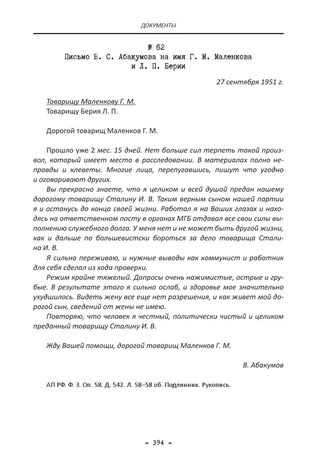 Главная Серия «История спецслужб» Политбюро и дело Виктора Абакумова Письмо В. С. Абакумова на имя Г. М. Маленкова и Л. П. Берии. 27 сен...