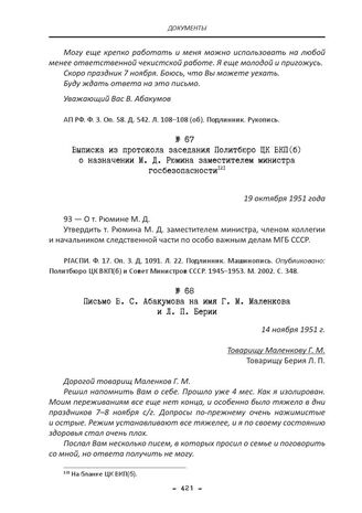 Политбюро и дело Виктора Абакумова: Сб. док. — Москва; Берлин: Директмедиа Паблишинг, 2021.